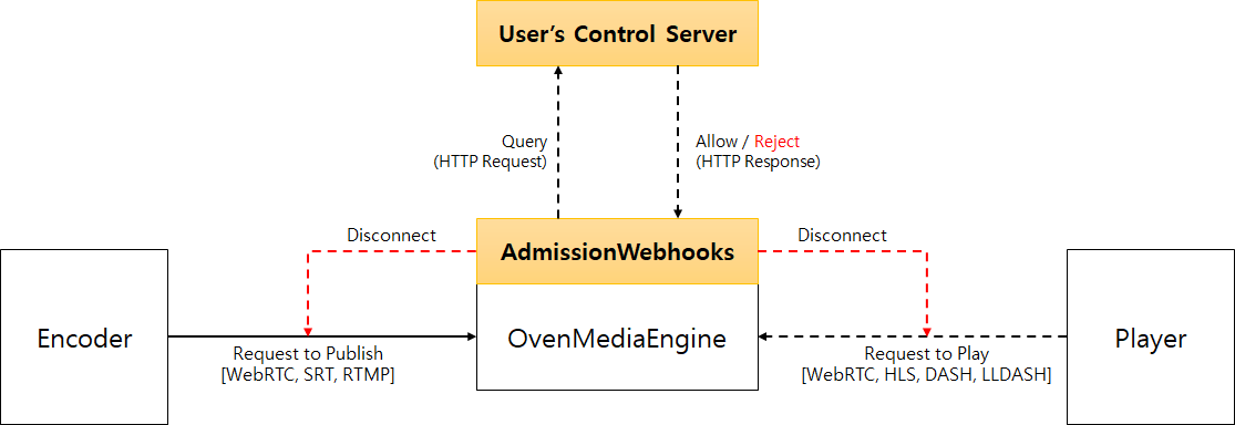 AdmissionWebhooks are HTTP callbacks that query the control server to control publishing and playback admission requests.