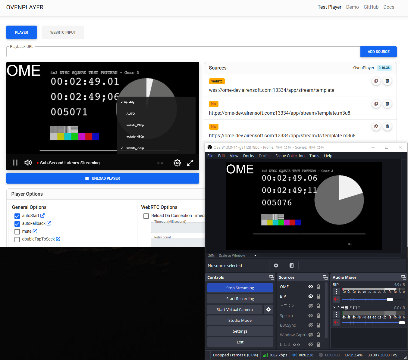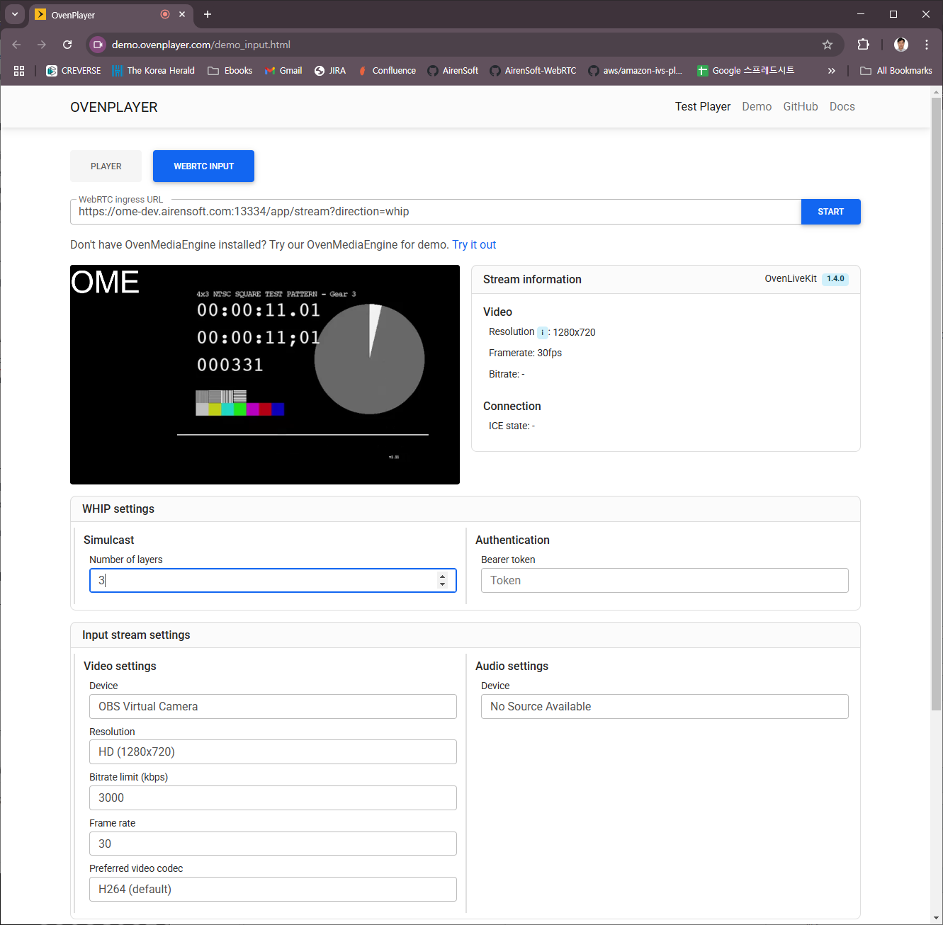 We provide a demo page so you can easily test your WebRTC input. You can access the demo page at the URL below.