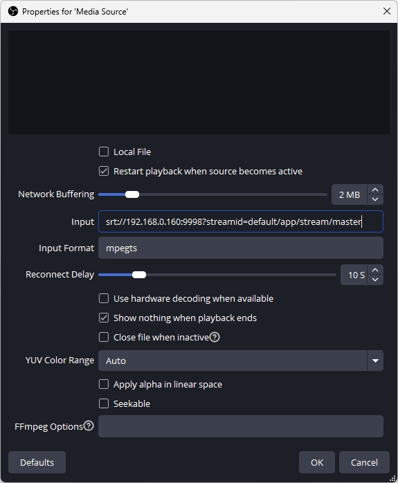 srt://192.168.0.160:9998?streamid=default/app/stream/master