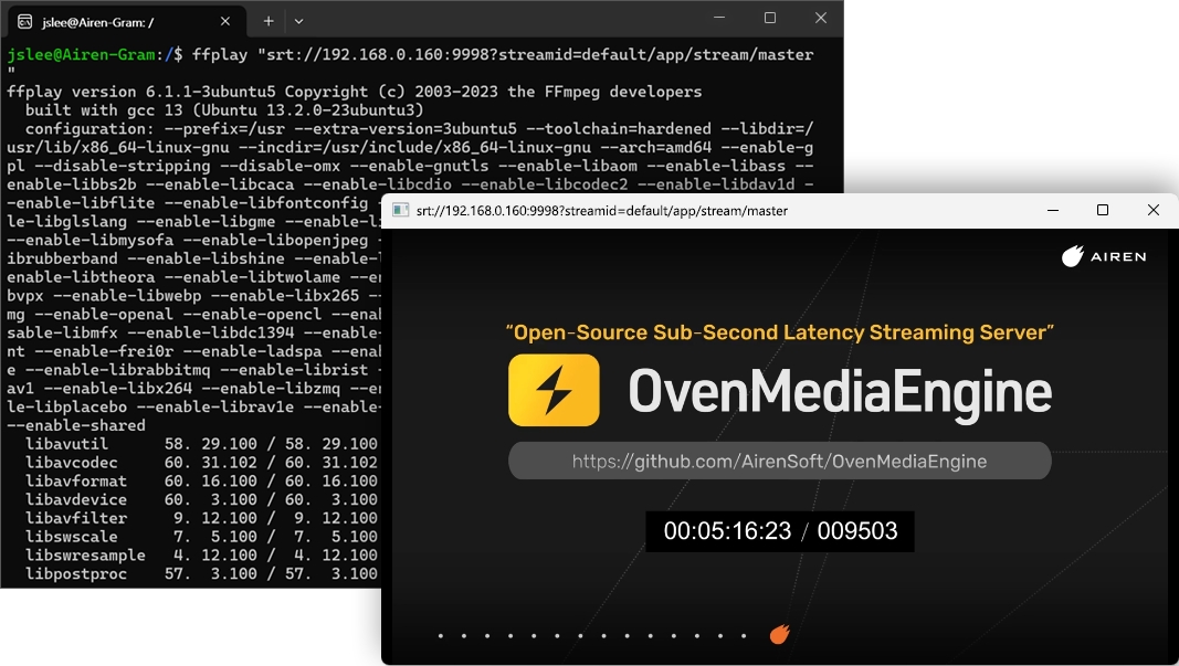 $ ffplay "srt://192.168.0.160:9998?streamid=default/app/stream/master"